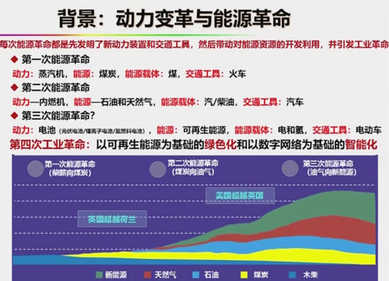 正在到來的第三次能源革命,以電池(光伏、鋰離子、氫燃料)為動(dòng)力、電和氫為載體、電動(dòng)車為交通工具,也催生和加速了以綠色和智能為基礎(chǔ)的第四次工業(yè)革命。