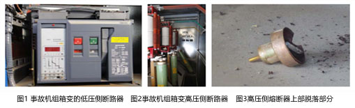 第四,因事故機(jī)組的箱變高壓側(cè)熔斷器方向三相均裝反,從而造成不能因一相熔斷器熔斷促成箱變高壓側(cè)斷路器跳閘。