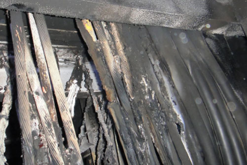 圖21 變頻器平臺(tái)下的通訊、控制電纜燒毀狀況
