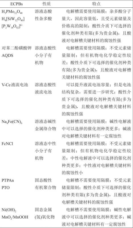 表3 不同類型ECPBs在應(yīng)用中的技術(shù)特點(diǎn)