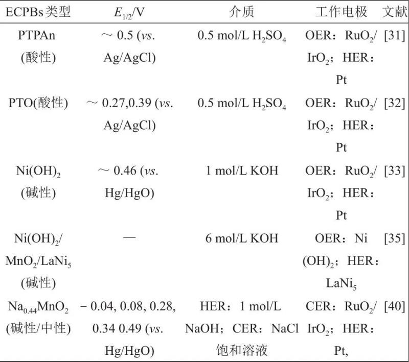 此外,Tsutsumi等報(bào)道了一種采用三種固體電極Ni(OH)2/MnO2/LaNi5組合的演示電池,MnO2作為分步法電解水制氫的ECPBs,可以通過兩步電化學(xué)循環(huán)分別產(chǎn)生H2和O2。
