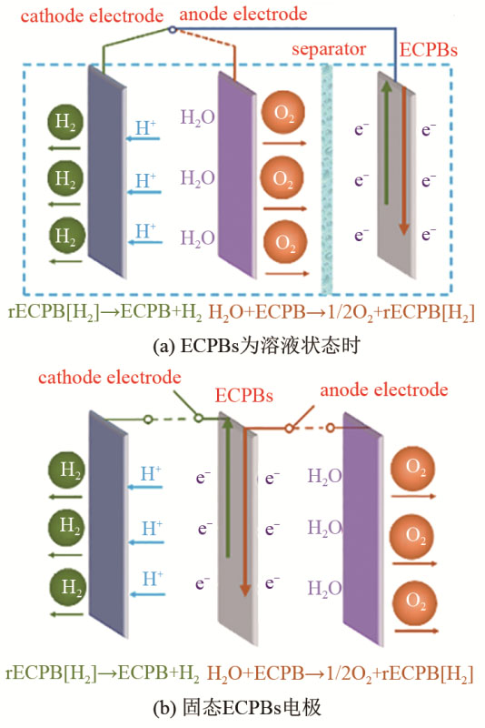 分步法裂解水所用的ECPBs為溶液態(tài)時(shí),需要隔膜將電池分成兩個(gè)獨(dú)立的腔室。這不僅增加了隔膜這部分成本,也由于隔膜的存在增大電池內(nèi)阻。王永剛團(tuán)隊(duì)研究了多種使用固態(tài)電極作為ECPBs的分步法電解水體系。