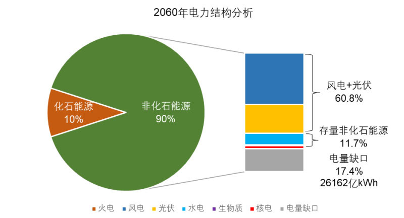 圖2 2060年中國電力結(jié)構(gòu)測算分析
