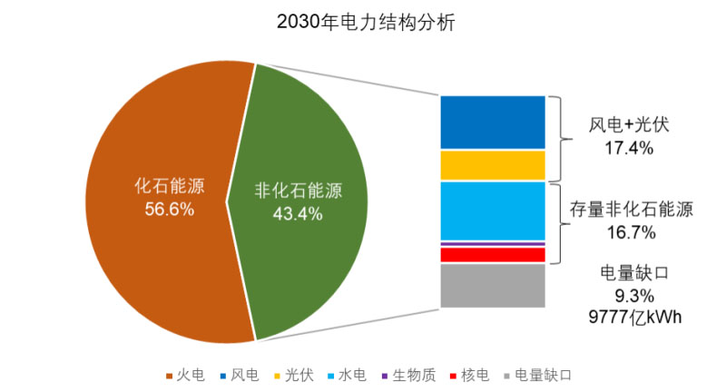 圖1 2030年中國電力結(jié)構(gòu)測算分析