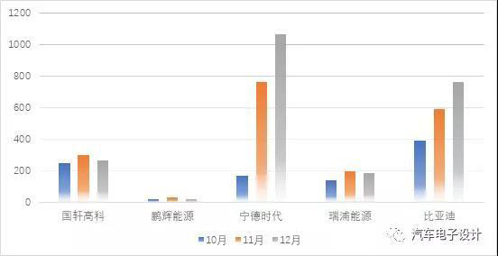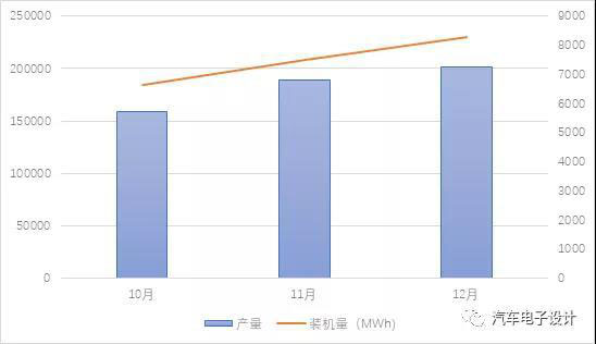 第四季度的新能源汽車的產(chǎn)量達到了一個高潮,10、11月分別從15.8萬、18.8萬和20.18萬,對應(yīng)6.63GWh、7.51GWh和8.29GWh。