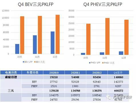 2020年第四季度的新能源汽車的產(chǎn)量達到了一個高潮,10、11月分別從15.8萬、18.8萬和20.18萬,對應(yīng)6.63GWh、7.51GWh和8.29GWh。