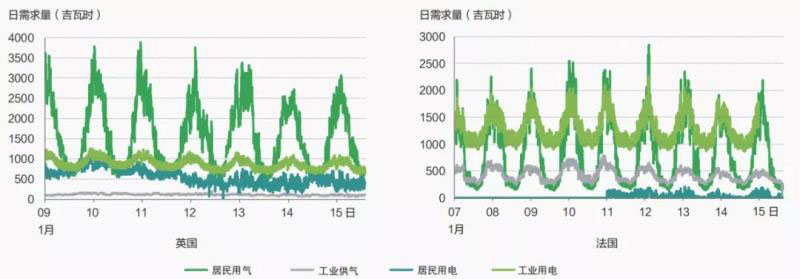 圖5 英國和法國電網(wǎng)與天然氣管網(wǎng)負(fù)荷波動對比