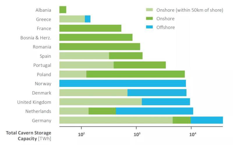 圖3 歐洲鹽穴儲氫潛力