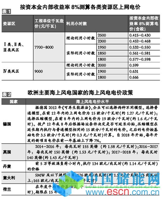 海上風(fēng)電代表著風(fēng)電技術(shù)領(lǐng)域的前沿和制高點(diǎn),是世界上主要風(fēng)電市場(chǎng)重點(diǎn)關(guān)注的發(fā)展方向,也是我國(guó)戰(zhàn)略性新興產(chǎn)業(yè)的重要內(nèi)容。我國(guó)可供開(kāi)發(fā)的海上風(fēng)能資源豐富,場(chǎng)址靠近負(fù)荷中心,海上風(fēng)電的開(kāi)發(fā)利用不僅是風(fēng)電產(chǎn)業(yè)向縱深發(fā)展的關(guān)鍵一環(huán),也是帶動(dòng)我國(guó)相關(guān)海洋產(chǎn)業(yè)協(xié)調(diào)發(fā)展的有效途徑,具有重要的戰(zhàn)略意義。然而沒(méi)有電價(jià)政策的支持,就無(wú)法培育出健康的海上風(fēng)電市場(chǎng),沒(méi)有規(guī)?;氖袌?chǎng),就沒(méi)有技術(shù)進(jìn)步的產(chǎn)業(yè)基礎(chǔ),就難以把握住產(chǎn)業(yè)發(fā)展的關(guān)鍵機(jī)遇期。距2010年我國(guó)首個(gè)海上風(fēng)電工程?hào)|海大橋項(xiàng)目首期投運(yùn)已有三年多時(shí)間,但我國(guó)海上風(fēng)電的指導(dǎo)電價(jià)遲遲未能出臺(tái),這已然影響到了海上風(fēng)電的發(fā)展進(jìn)程。海上風(fēng)電特許權(quán)招標(biāo)項(xiàng)目并未像在陸上風(fēng)電上實(shí)施的那樣,為海上風(fēng)電標(biāo)桿電價(jià)的制定提供準(zhǔn)確的依據(jù)?!笆濉逼陂g500萬(wàn)千瓦的海上風(fēng)電裝機(jī)規(guī)劃目標(biāo)的完成時(shí)間目前已經(jīng)所剩無(wú)幾,當(dāng)務(wù)之急是盡快出臺(tái)合理的海上風(fēng)電指導(dǎo)電價(jià)??v觀海上風(fēng)電發(fā)展較好的幾個(gè)歐洲國(guó)家,都有清晰明確的單獨(dú)針對(duì)海上風(fēng)電的電價(jià)機(jī)制,且電價(jià)水平對(duì)產(chǎn)業(yè)發(fā)展形成穩(wěn)定而有力的支撐作用。(表2)其中德國(guó)在2012年修訂可再生能源法的時(shí)候,還上調(diào)了海上風(fēng)電價(jià)格,目的是最大程度地保證政策的穩(wěn)定性和電價(jià)水平的科學(xué)性。我國(guó)可參考別國(guó)經(jīng)驗(yàn)、電價(jià)機(jī)制和水平,結(jié)合我國(guó)海上風(fēng)電工程實(shí)際,制定海上風(fēng)電標(biāo)桿電價(jià)。有鑒于我國(guó)海洋工程條件的復(fù)雜性,以及初期階段工程造價(jià)較高、運(yùn)維費(fèi)用較高的情況,海上風(fēng)電的電價(jià)支持力度不應(yīng)低于表2中所列歐洲各國(guó)的水平。