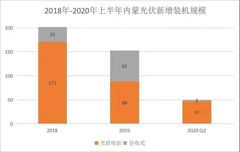 圖片:2018-2020年上半年內(nèi)蒙光伏裝機(jī)情況(萬千瓦),數(shù)據(jù)來源:能源局