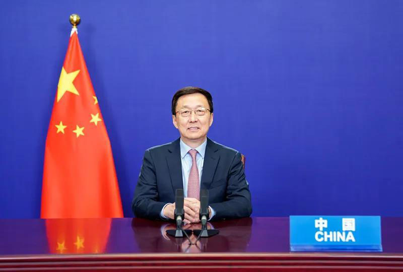 1月25日,中共中央政治局常委、國務院副總理韓正在北京以視頻方式出席首屆氣候適應峰會并發(fā)表致辭。新華社記者 殷博古 攝