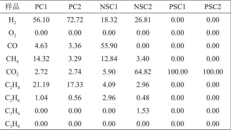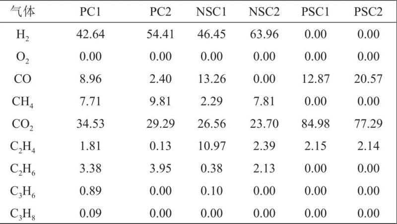 2.2 在不同實(shí)驗(yàn)環(huán)境和體系下產(chǎn)生的氣體成分分析