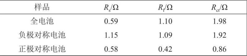 表2 全電池,負(fù)極對(duì)稱電池及正極對(duì)稱電池阻抗譜擬合結(jié)果