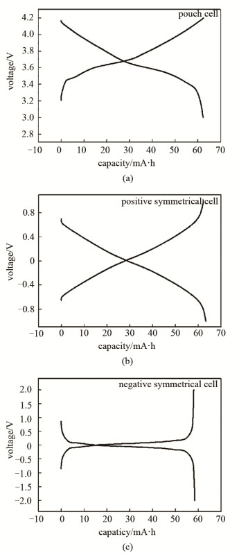 為了得到可靠的實(shí)驗(yàn)結(jié)論,選擇了常規(guī)的0.1 C/0.1 C循環(huán)試驗(yàn)和異常過(guò)充試驗(yàn)。實(shí)驗(yàn)體系由正極對(duì)稱電池、負(fù)極對(duì)稱電池和全電池組成。