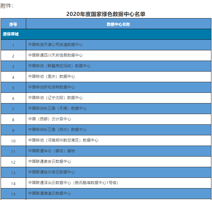 公告指出,為加快綠色數(shù)據(jù)中心建設(shè),引領(lǐng)數(shù)據(jù)中心走高效、低碳、集約、循環(huán)的綠色發(fā)展道路,經(jīng)申報(bào)單位自評價(jià)、第三方機(jī)構(gòu)評價(jià)、省級工業(yè)和信息化主管部門及相關(guān)單位推薦、專家評審、公示等程序,工業(yè)和信息化部、國家發(fā)展改革委、商務(wù)部、國管局、銀保監(jiān)會(huì)、國家能源局確定了60家2020年度國家綠色數(shù)據(jù)中心名單。