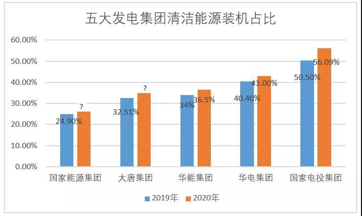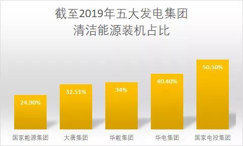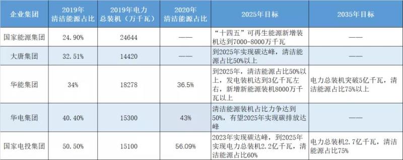 而大唐集團和華能集團給出的目標則是,到2025年清潔能源裝機超過50%,國家電投給出的目標最高,到2025年達到60%。