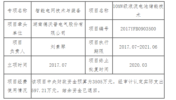 中國儲能網(wǎng)訊:根據(jù)《國家重點(diǎn)研發(fā)計(jì)劃管理暫行辦法》《關(guān)于國家重點(diǎn)研發(fā)計(jì)劃項(xiàng)目調(diào)整有關(guān)事項(xiàng)的通知》等文件有關(guān)規(guī)定,現(xiàn)對國家重點(diǎn)研發(fā)計(jì)劃“智能電網(wǎng)技術(shù)與裝備”重點(diǎn)專項(xiàng)“10MW級液流電池儲能技術(shù)”項(xiàng)目終止信息進(jìn)行公示。