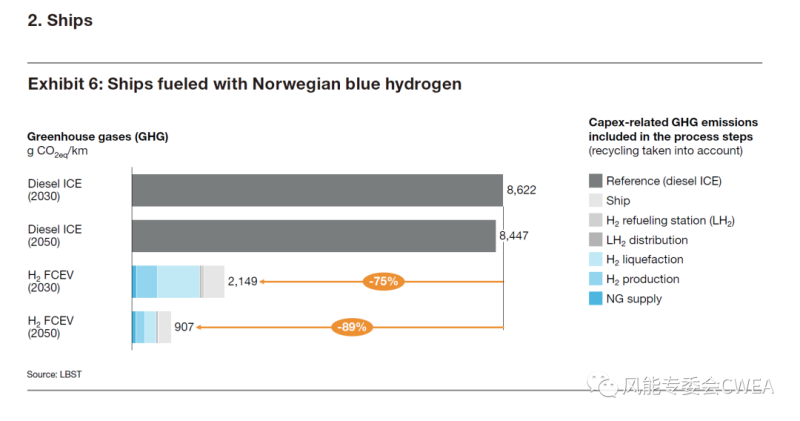 通過對(duì)氫能途徑和應(yīng)用的分析,發(fā)現(xiàn)通過使用綠氫(太陽能、風(fēng)能)和藍(lán)氫,都可實(shí)現(xiàn)較高的溫室氣體排放量減少。