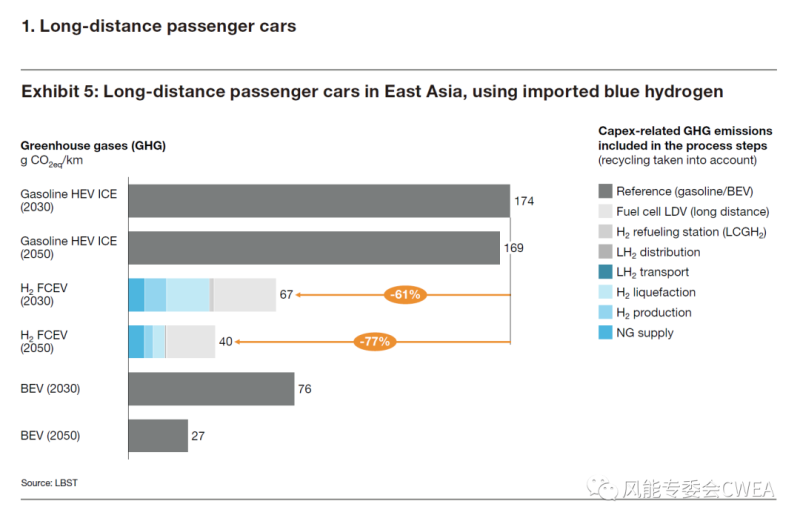 長(zhǎng)距離乘用車使用情形,東亞,使用進(jìn)口的藍(lán)氫