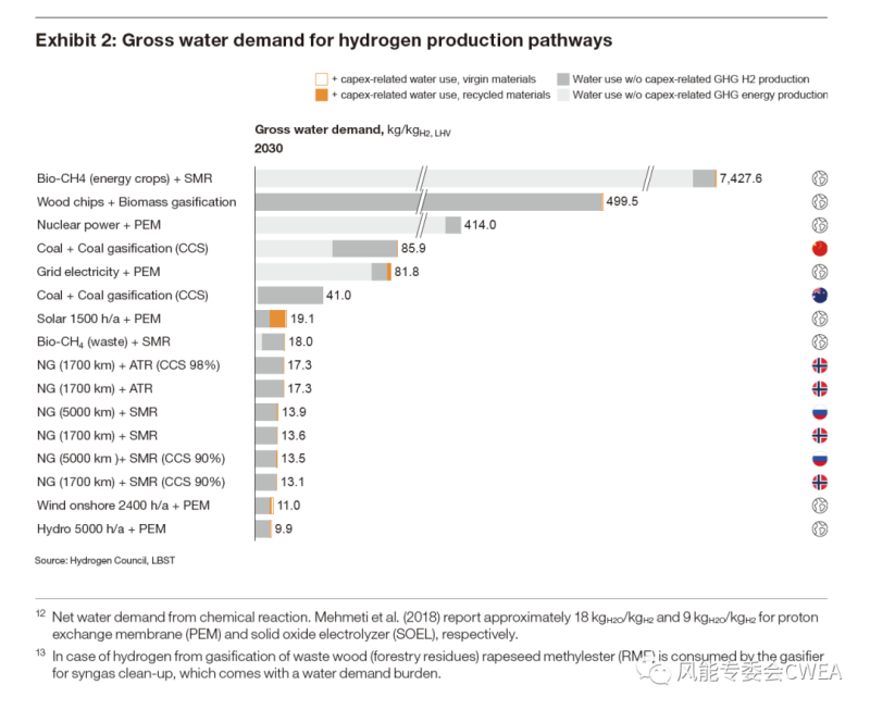 使用可再生能源的低碳?xì)?,可以大大減少溫室氣體的排放;與傳統(tǒng)化石能源相比,使用光伏和風(fēng)能進(jìn)行電解氫,所需的總水量也非常低。