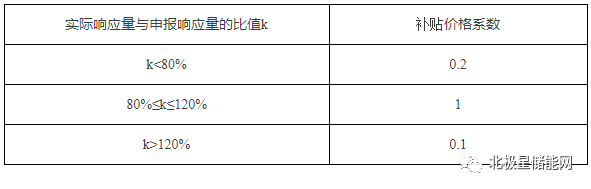 2.對于不同完成情況的電力用戶、負(fù)荷集成商將在補(bǔ)貼價格基礎(chǔ)上乘以補(bǔ)貼價格系數(shù):若日實際響應(yīng)量低于日申報響應(yīng)量的80%,按照補(bǔ)貼價格的20%進(jìn)行補(bǔ)貼;若日實際響應(yīng)量在日申報響應(yīng)量的80%至120%,按照補(bǔ)貼價格進(jìn)行補(bǔ)貼;若日實際響應(yīng)量高于日申報響應(yīng)量的120%,高出日申報響應(yīng)量120%的部分按照補(bǔ)貼價格的10%進(jìn)行補(bǔ)貼。