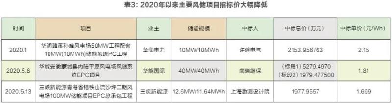 2020年初以來,新能源配儲能項(xiàng)目開標(biāo)價(jià)格逐漸走低,從年初的2.65元/Wh下降至1.65元/Wh左右。與此同時,無視項(xiàng)目成本一味低價(jià)競標(biāo)的現(xiàn)象在儲能招投標(biāo)中愈演愈烈。5月中旬,三峽新能源青海風(fēng)儲項(xiàng)目開標(biāo),1.699元/Wh的EPC價(jià)格刷新了行業(yè)底線。業(yè)界普遍認(rèn)為,該價(jià)格已經(jīng)低于儲能成本價(jià)。
