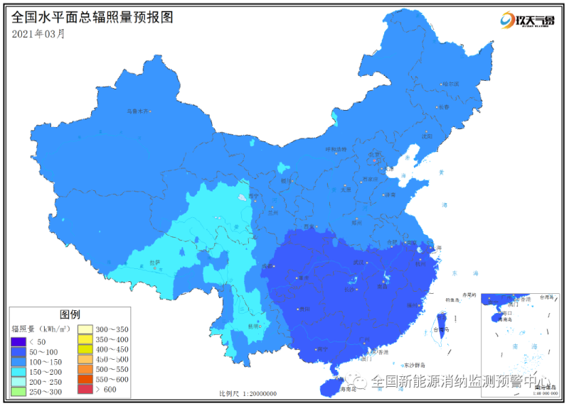 附圖6 全國2021年3月水平面總輻照量預(yù)報(bào)圖