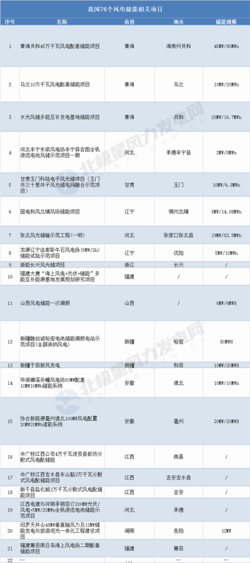 據(jù)北極星風力發(fā)電網(wǎng)不完全統(tǒng)計,2020年我國約有76個風電儲能項目,詳情將發(fā)布在《2020年中國風電行業(yè)深度報告》(PS:3月初發(fā)布,可掃描文末二維碼添加好友預購),