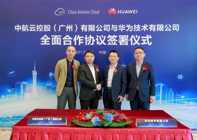中航云控股(廣州)有限公司林睿董事長、首席技術(shù)官黃雋、華為技術(shù)有限公司副總裁周桃園、華為中國政企業(yè)務副總裁楊萍等出席簽約儀式。黃雋、楊萍分別代表雙方簽約,林睿、周桃園見證簽約。
