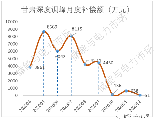 2020年8月進(jìn)入現(xiàn)貨市場持續(xù)運(yùn)行后,甘肅曾經(jīng)的輔助服務(wù)補(bǔ)償重頭,調(diào)峰輔助服務(wù),補(bǔ)償總額持續(xù)下降,從曾經(jīng)的月均4000萬以上不斷下降至2020年12月的51萬。