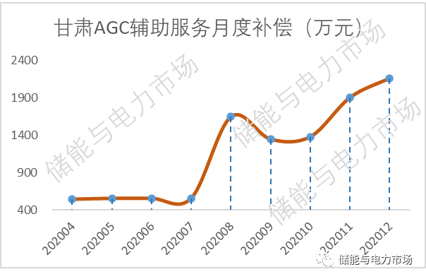 2020年8月進(jìn)入現(xiàn)貨市場持續(xù)運(yùn)行后,甘肅的調(diào)頻輔助服務(wù)的補(bǔ)償額從556萬/月上升至1644萬每月,并持續(xù)保持在1300萬/月以上。2020年12月,取得全年最高的2159萬。