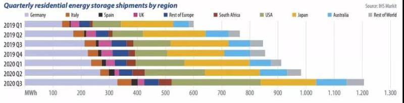 IHS Markit預(yù)計(jì),德國第四季度的強(qiáng)勁表現(xiàn)將使其首次超越日本,成為全球最大的家用儲能市場。在一定程度上,這種持續(xù)增長是由房主選擇投資房屋,而不是旅游或度假(因?yàn)槁糜蔚倪x擇受到嚴(yán)重限制),以及支持屋頂太陽能和儲能的補(bǔ)貼計(jì)劃推動(dòng)的。