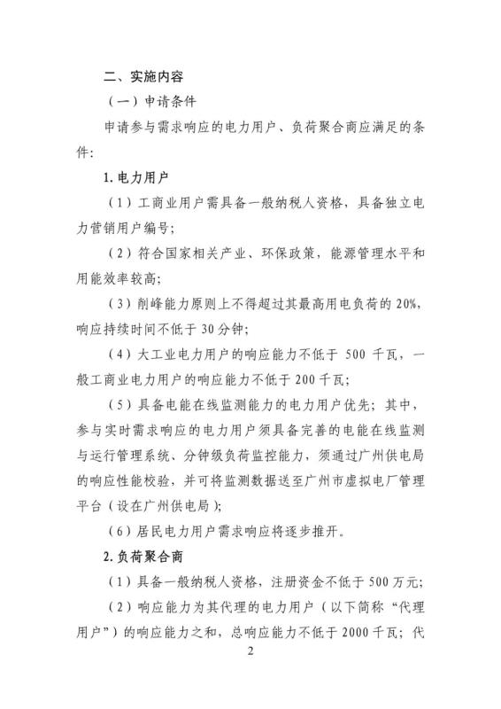 大工業(yè)電力用戶的響應(yīng)能力不低于500千瓦,一般工商業(yè)電力用戶的響應(yīng)能力不低于200千瓦。