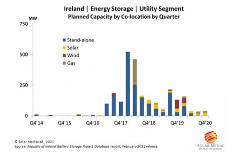 規(guī)劃中的項(xiàng)目計(jì)劃凸顯了愛爾蘭對(duì)電網(wǎng)規(guī)模電池儲(chǔ)能市場的更多興趣,這超出了DS3 (提供安全可持續(xù)的電力系統(tǒng))計(jì)劃的最初推動(dòng)。在2021年,關(guān)鍵部門的利益相關(guān)者將密切關(guān)注即將推出的DS3計(jì)劃,同時(shí)尋求替代的市場途徑,其中包括容量市場和商戶交易(在英國和歐洲其他國家都有這樣的交易)。