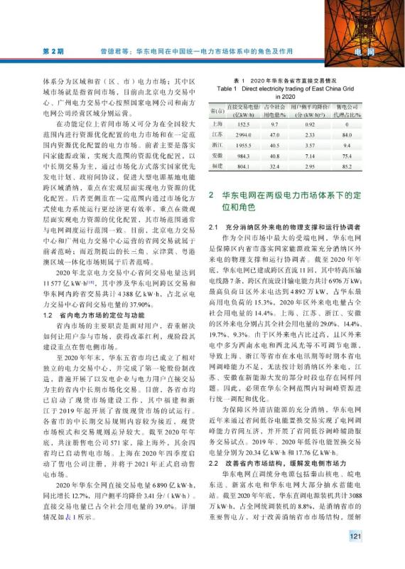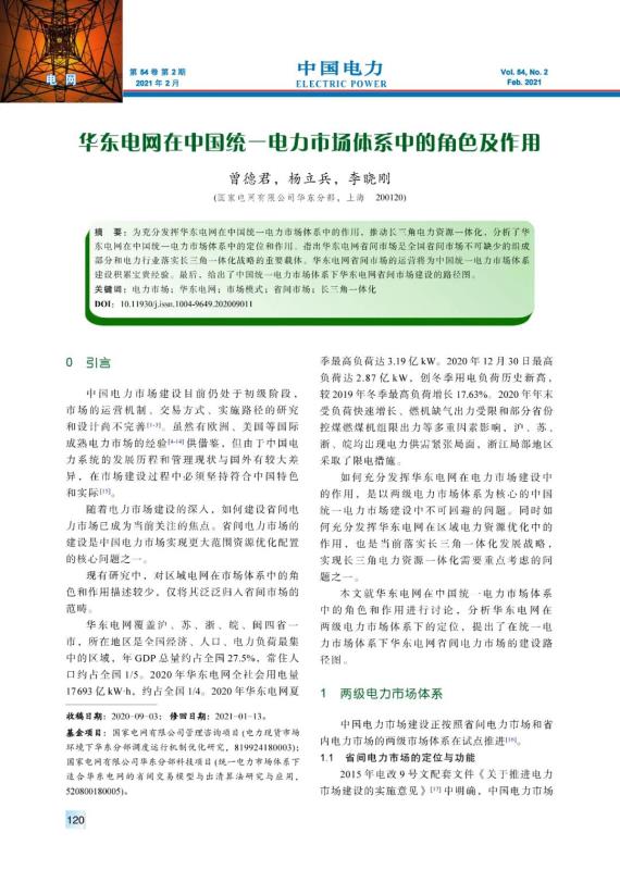 曾德君, 楊立兵, 李曉剛. 華東電網(wǎng)在中國(guó)統(tǒng)一電力市場(chǎng)體系中的角色及作用[J]. 中國(guó)電力, 2021, 54(2): 120-126.