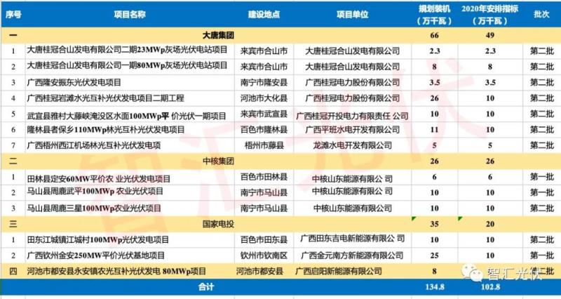 2020年11月,廣西能源局發(fā)布《關(guān)于印發(fā)2020年平價風(fēng)電和第一批平價光伏項目建設(shè)方案》的通知,公布了廣西2020年平價風(fēng)電和第一批平價光伏項目建設(shè)方案,其中: