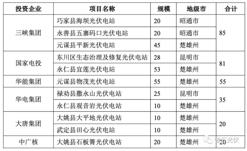 表:云南3GW光伏項目具體分配情況(單位:萬kW)