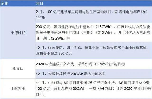 強(qiáng)勁的市場(chǎng)預(yù)期,也激發(fā)了動(dòng)力電池企業(yè)加速擴(kuò)張,特別是各大頭部動(dòng)力電池企業(yè)繼續(xù)跑馬圈地,以提升未來(lái)市場(chǎng)占有率。2月2日,寧德時(shí)代發(fā)布公告稱,計(jì)劃在廣東肇慶、四川宜賓、福建寧德建設(shè)三個(gè)生產(chǎn)基地,預(yù)計(jì)將增加產(chǎn)能79GWh,擬投資合計(jì)高達(dá)290億元,而在前不久的2020年12月31日,寧德時(shí)代剛宣布390億元的擴(kuò)產(chǎn)計(jì)劃。2月3日,億緯鋰能也發(fā)布公告,孫公司億緯動(dòng)力香港擬1.28億美元設(shè)惠州億緯動(dòng)力以擴(kuò)大動(dòng)力電池生產(chǎn)規(guī)模。2021年,注定是各大動(dòng)力電池企業(yè)產(chǎn)能再擴(kuò)張之年。根據(jù)消息顯示,寧德時(shí)代車?yán)餅稠?xiàng)目正在有序推進(jìn),一、二號(hào)廠房預(yù)計(jì)今年10月投入使用。中航鋰電廈門A6項(xiàng)目也在加緊設(shè)備安裝調(diào)試,即將迎來(lái)正式投產(chǎn)。而早在2020年11月,蜂巢能源宣布在歐洲建設(shè)24GWh的工廠,總投資達(dá)到155億元。
