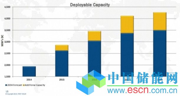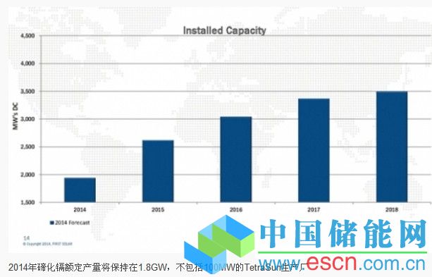 實(shí)際上,F(xiàn)irst Solar在2015年僅增加約200MW的新產(chǎn)能,但是新增產(chǎn)能速度將穩(wěn)步提高,在2016年增加至400MW左右,2017年約700MW,2018年新產(chǎn)能再次出現(xiàn)同樣水平。