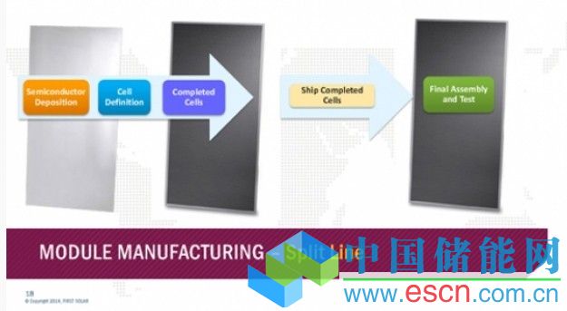 First Solar指出,通過(guò)減少安裝及升級(jí)時(shí)間,其能夠?qū)崿F(xiàn)更低的每瓦資本支出成本。然而,該公司強(qiáng)調(diào),能夠拆分組件或電池沉積工藝(所有都在真空條件下),之后進(jìn)行玻璃或玻璃組件最終裝配,并可能在不同位置分別進(jìn)行測(cè)試。該公司指出,分割生產(chǎn)線系統(tǒng)實(shí)現(xiàn)每瓦最低資本支出成本。