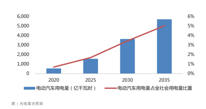 在此能源結(jié)構(gòu)與供給情況背景下,新能源汽車的發(fā)展需求得到了充分保障。根據(jù)社會不同車型電動化率假設(shè)條件測算,2035年純電動汽車用電量僅占全社會用電量的5%,比例十分有限。但是無序充電對電力系統(tǒng)的負(fù)荷沖擊大。此外,氫燃料電池汽車的氫能消費占氫能總供給的比例也有限。