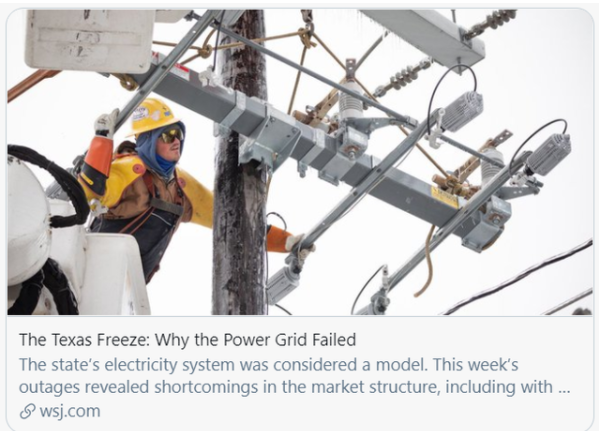 得州冰凍:為何電網(wǎng)失靈?/《華爾街日報》報道截圖