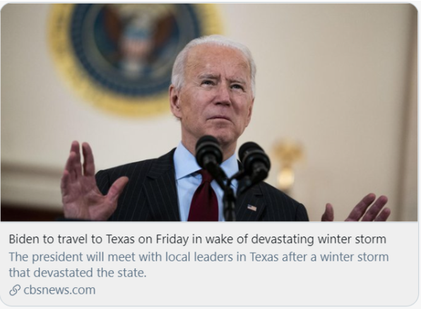 拜登將于當(dāng)?shù)貢r間2月26日前往得州。/CBS報道截圖