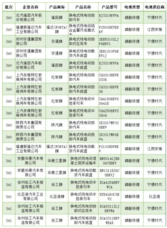 在今年1月發(fā)布的340批新車(chē)公告中,換電式純電動(dòng)卡車(chē)達(dá)到12款,較上一批次增加了140%。2月發(fā)布的341批新車(chē)公告中,換電式純電動(dòng)卡車(chē)6款。申報(bào)企業(yè)包括北汽福田、新福達(dá)、宇通、依維柯、陜汽、華菱、徐工、比亞迪等。