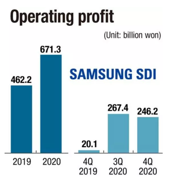 三星SDI表示,公司2020年銷售額達(dá)11.29萬億韓元(約合人民幣657億元),同比增長11.9%;營業(yè)利潤同比增長45.2%至6713億韓元(約合人民幣39億元);凈利潤同比增長56.8%至6310億韓元(約合人民幣36.7億元)。