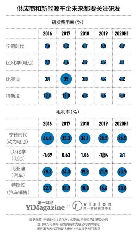 作為電動(dòng)車(chē)產(chǎn)業(yè)鏈的中游環(huán)節(jié),如果專(zhuān)注于動(dòng)力電池研究,就意味著進(jìn)入了一個(gè)高研發(fā)投入、長(zhǎng)回報(bào)周期的“風(fēng)險(xiǎn)行業(yè)”。以行業(yè)龍頭LG化學(xué)為例,集團(tuán)資源和外部基金可以支撐起公司每年相當(dāng)于20億元至30億元人民幣的研發(fā)投入,卻無(wú)法保證公司最基礎(chǔ)的毛利率始終為正。