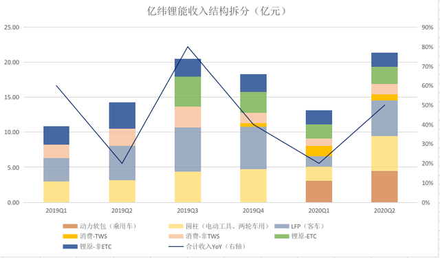 在2020年7月的定向增發(fā)中,由于億緯鋰能更改了募資的用途,實(shí)際上僅有4.5億元被用于寶馬定點(diǎn)的三元方形電池領(lǐng)域,其余20.5億則被用于TWS豆式電池、物聯(lián)網(wǎng)用鋰錳電池、以及適配電動(dòng)工具和兩輪車(chē)的圓柱電池的擴(kuò)產(chǎn)。