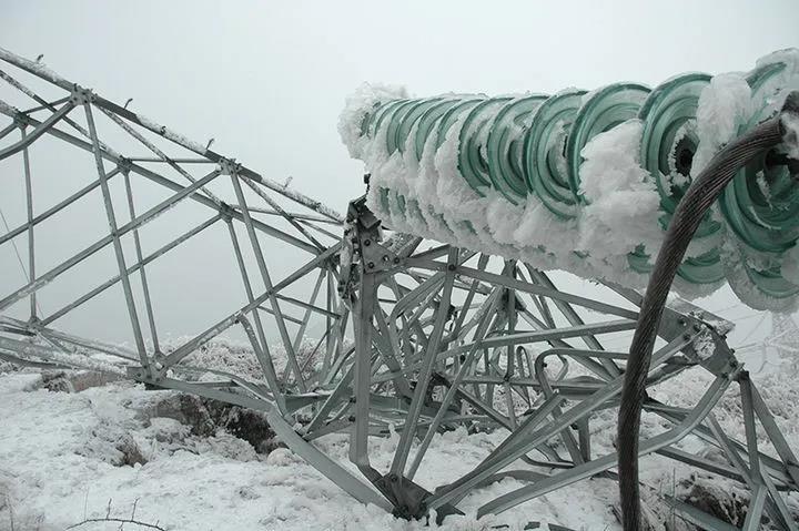 覆冰造成了多處電力線路冰閃跳閘、倒塔斷線的事故,電網(wǎng)設備受損嚴重。根據(jù)當年搶修電網(wǎng)指揮部提供的數(shù)據(jù),浙江、安徽、福建、河南、湖南、湖北、江西、四川、重慶、廣東、廣西、云南和貴州共13個省份的電力系統(tǒng)運行受到影響,其中,貴州、湖南、江西等地災情最為嚴重。貴州500千伏主網(wǎng)架基本癱瘓,湖南500千伏電網(wǎng)除湘北、湘西外基本全停,江西電網(wǎng)損毀嚴重。[1]