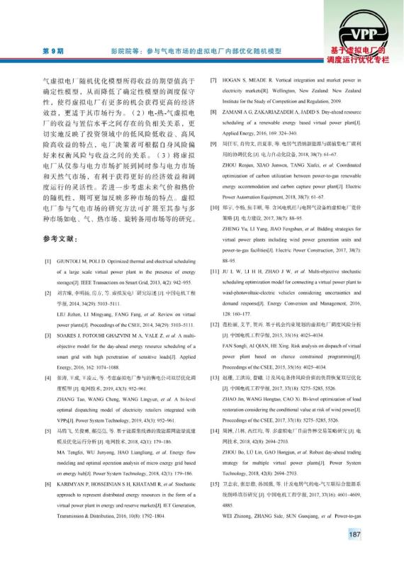 彭院院, 周任軍, 曾子琪, 等.參與氣電市場(chǎng)的虛擬電廠內(nèi)部?jī)?yōu)化隨機(jī)模型[J]. 中國(guó)電力, 2020, 53(9): 181-188.