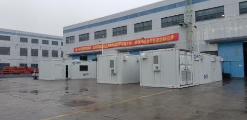 該工程為廣東粵電大埔發(fā)電有限公司1、2號發(fā)電機組的配套工程,旨在聯(lián)合發(fā)電機組開展電網(wǎng)AGC調(diào)頻業(yè)務(wù),聯(lián)合調(diào)頻時儲能輔助調(diào)頻裝置最大出力可按儲能選型功率輸出。項目由上海電氣100%投資建設(shè),公司中標后負責18MW/9MWh儲能調(diào)頻的全部主設(shè)備集成與成套,包含8臺電池集裝箱,8臺箱變,3臺中低壓配電預制倉等設(shè)備,該項目在公司所屬的上海環(huán)保公司車間進行裝配與集成。